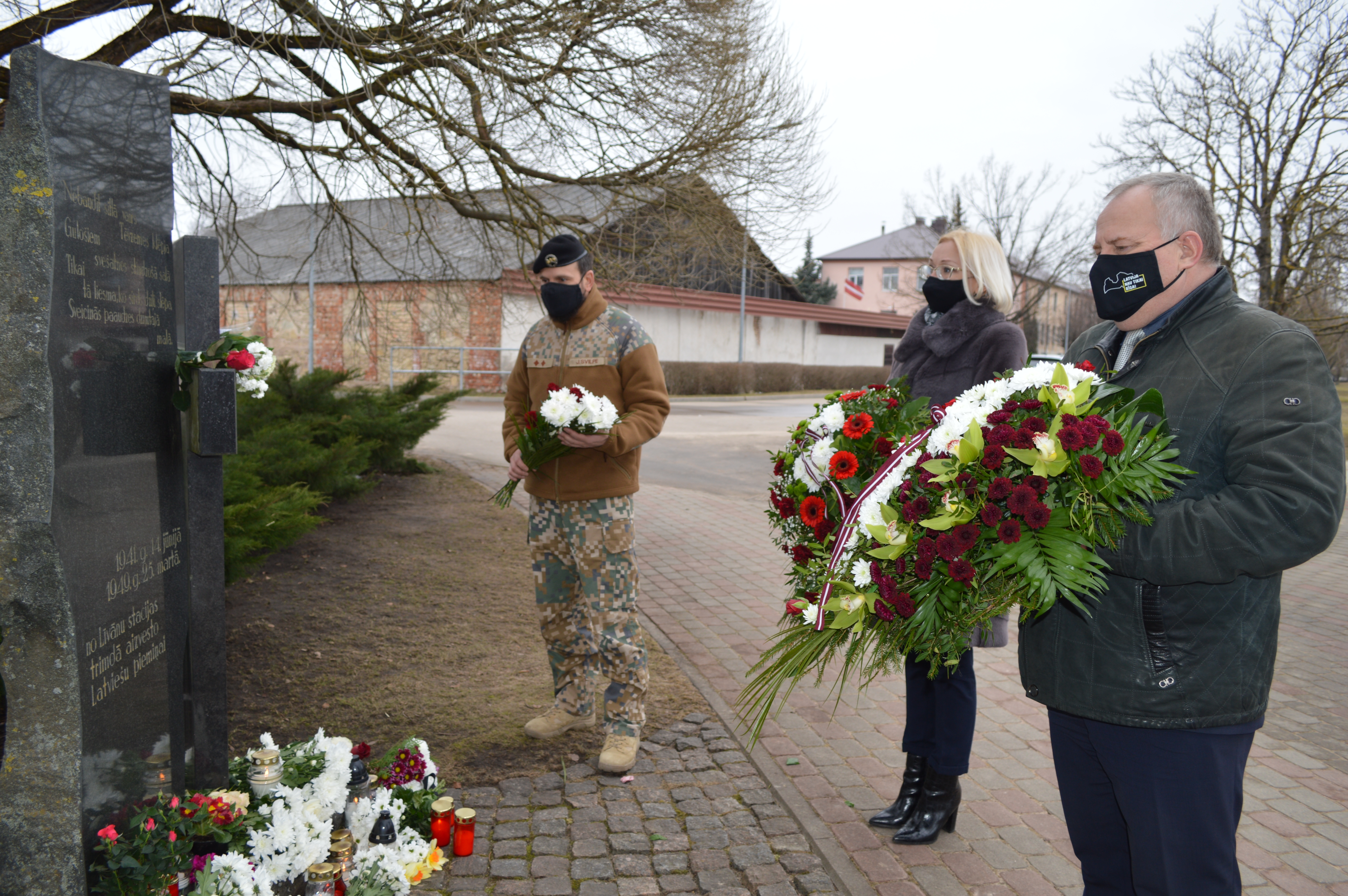 Ziedus pie piemiņas akmens nolika arī Līvānu novada domes vadība - priekšsēdētājs Andris Vaivods, priekšsēdētāja vietniece Ginta Kraukle, kā arī Zemessardzes 35. kājnieku bataljona komandieris, pulkvežleitnants Jānis Svilpe.