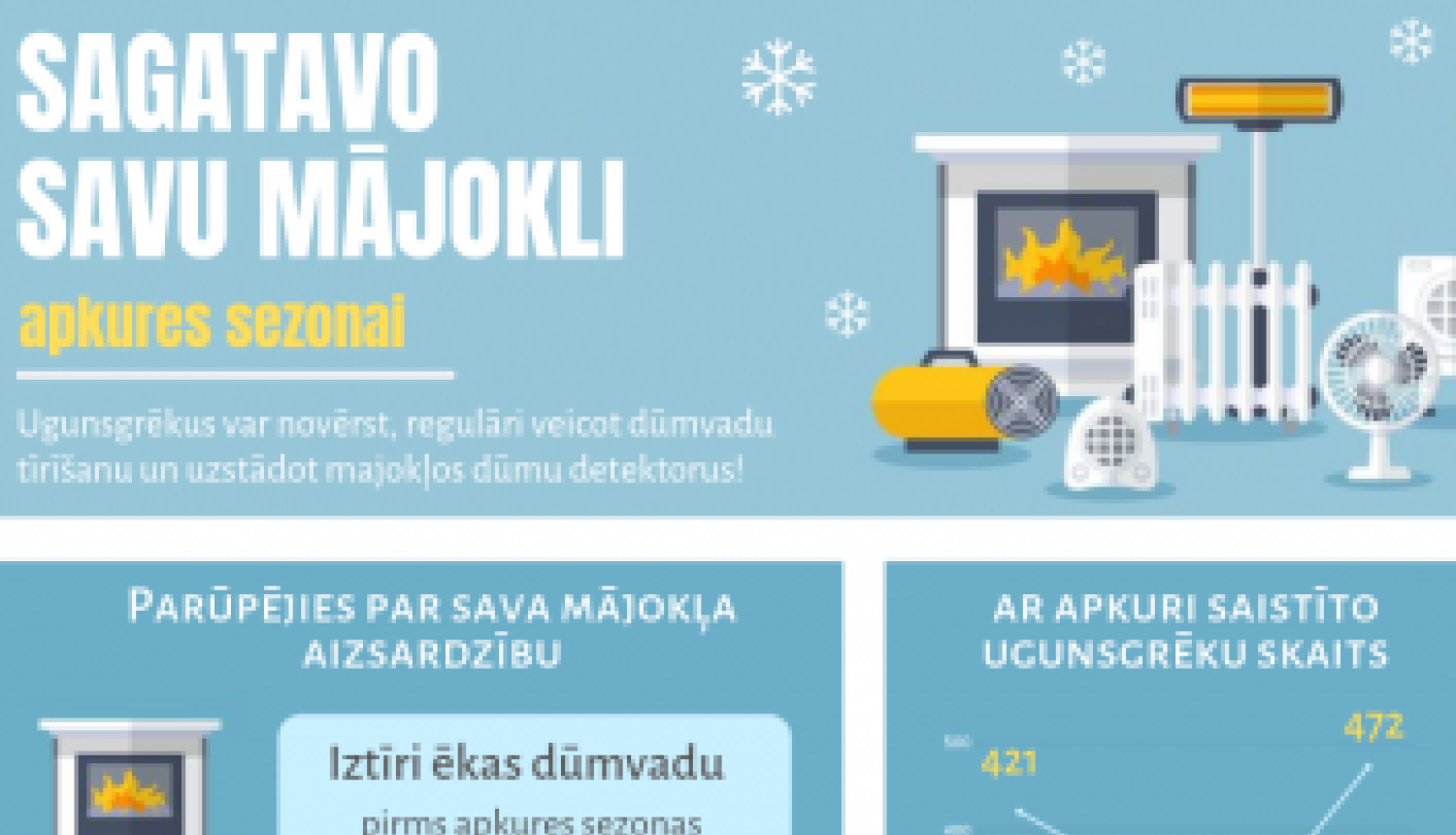 VUGD aicina neatlikt rūpes par savu drošību un iztīrīt skursteni, kā arī paaicināt sertificētu speciālistu pārbaudīt apkures ierīču un iekārtu tehnisko stāvokli!