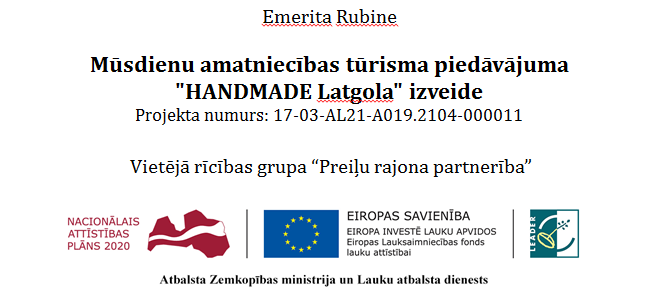 Projekts tapis, pateicoties ELFLA (LEADER programmas līdzfinansējumam) un daudziem labiem cilvēkiem – mūsu atbalstītājiem, - kuri jau iekļauti “HANDMADE LATGOLA draugu grāmatā”!