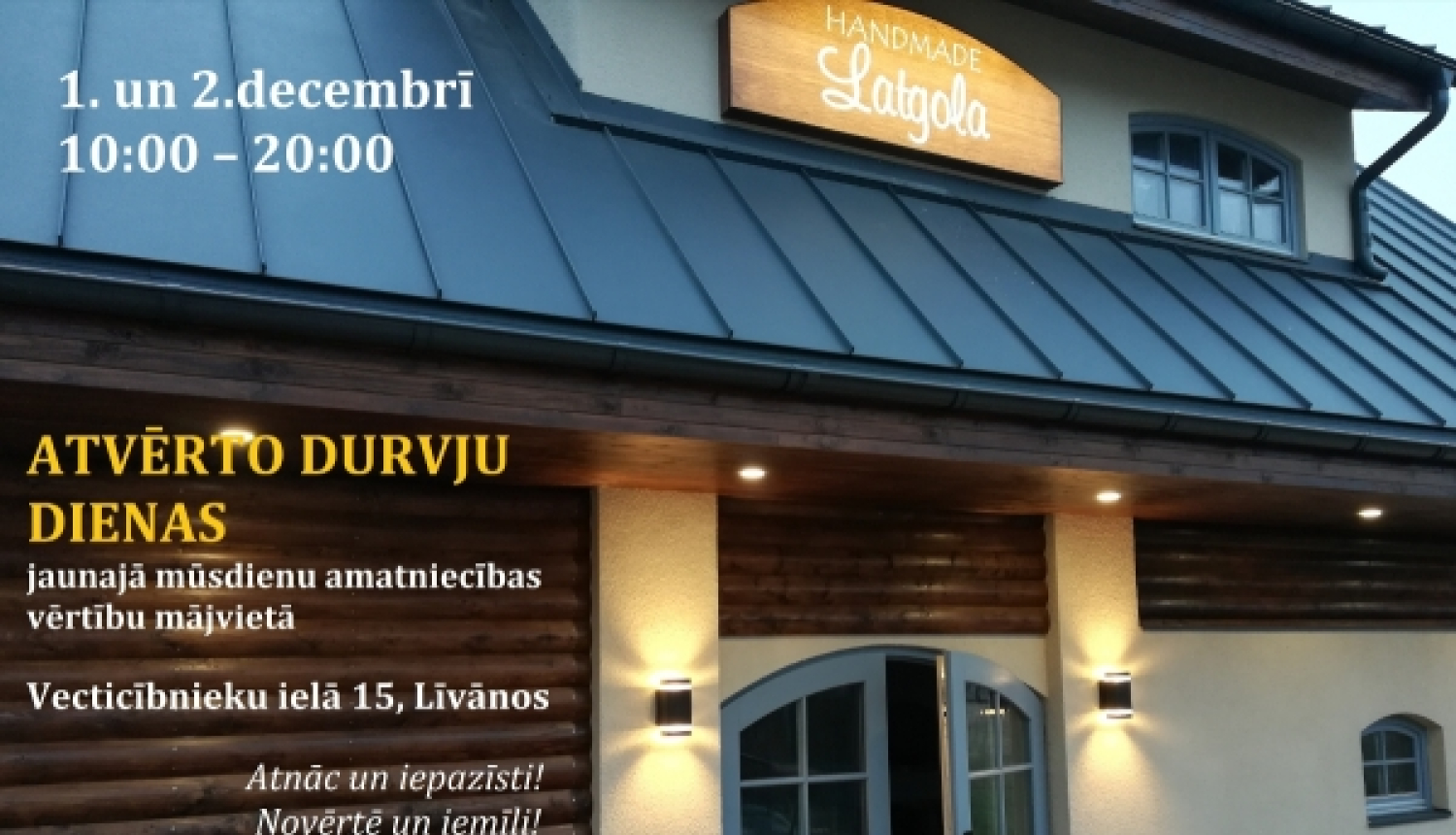Projekta “HANDMADE Latgola” komanda 1. un 2.decembrī 10:00 – 20:00 aicina ikdienu uz ATVĒRTO DURVJU DIENĀM jaunajā mūsdienu amatniecības vērtību mājvietā – Līvānos, Vecticībnieku ielā 15.