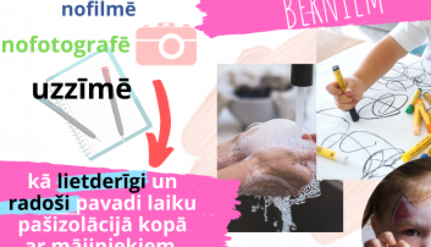 Bērni tiek aicināti izmantojot dažāda veida uzskates līdzekļus (nofilmējot nelielu video – līdz 3 minūtēm, nobildējot fotogrāfiju vai uzzīmējot A4 formāta zīmējumu jebkurā tehnikā) atainot sekojošas tēmas: