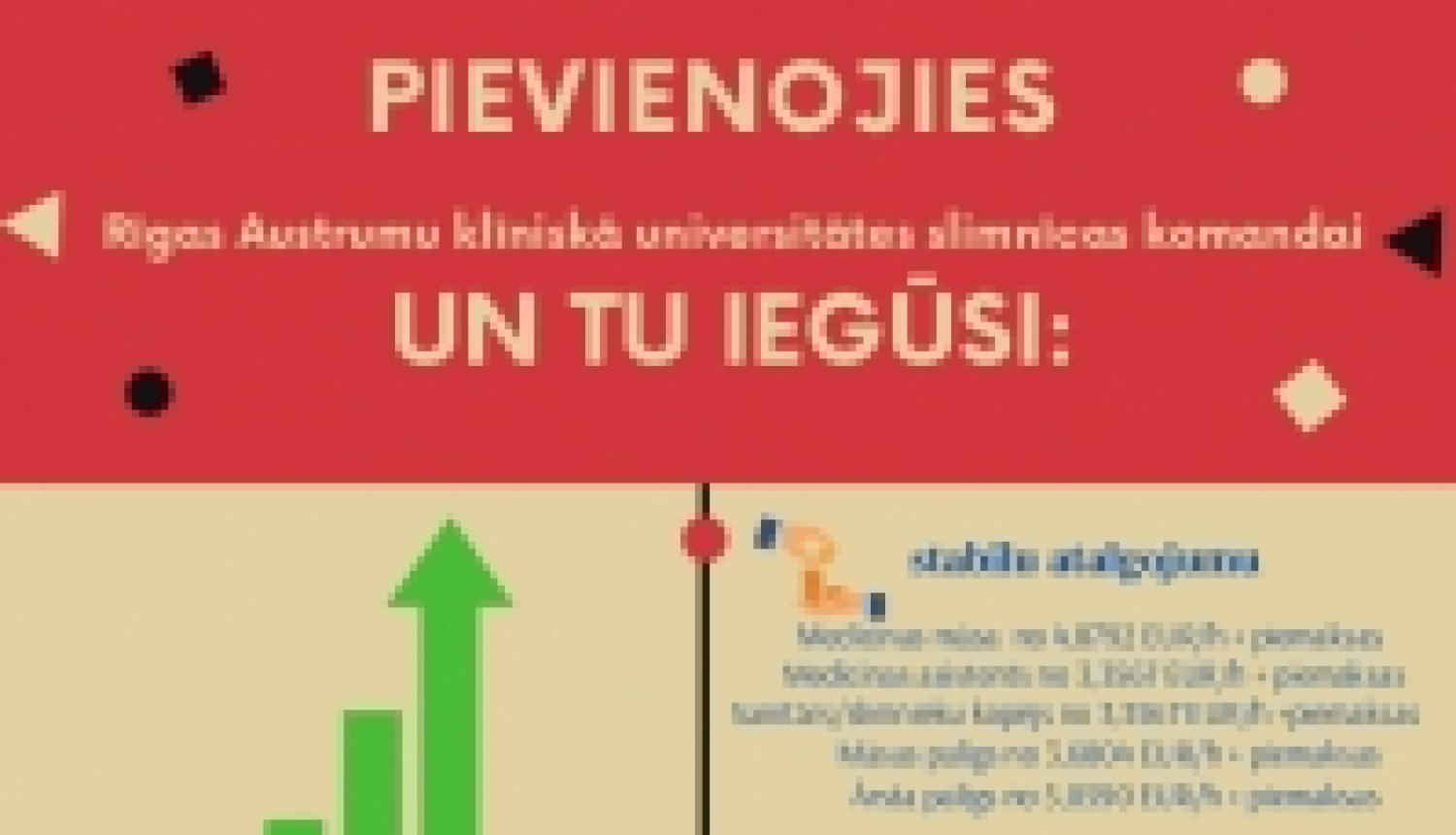 Rīgas Austrumu Klīniskā Universitātes slimnīca aicina komandai pievienoties medicīnas darbiniekus.
