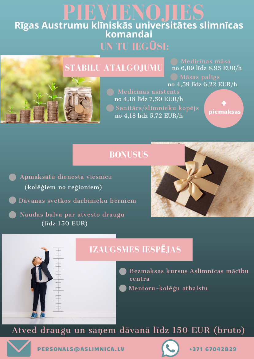 Rīgas Austrumu Klīniskā Universitātes slimnīca aicina komandai pievienoties medicīnas darbiniekus.