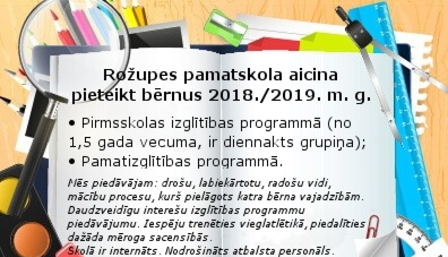 Rožupes pamatskola aicina pieteikt bērnus 2018./2019. m. g.: