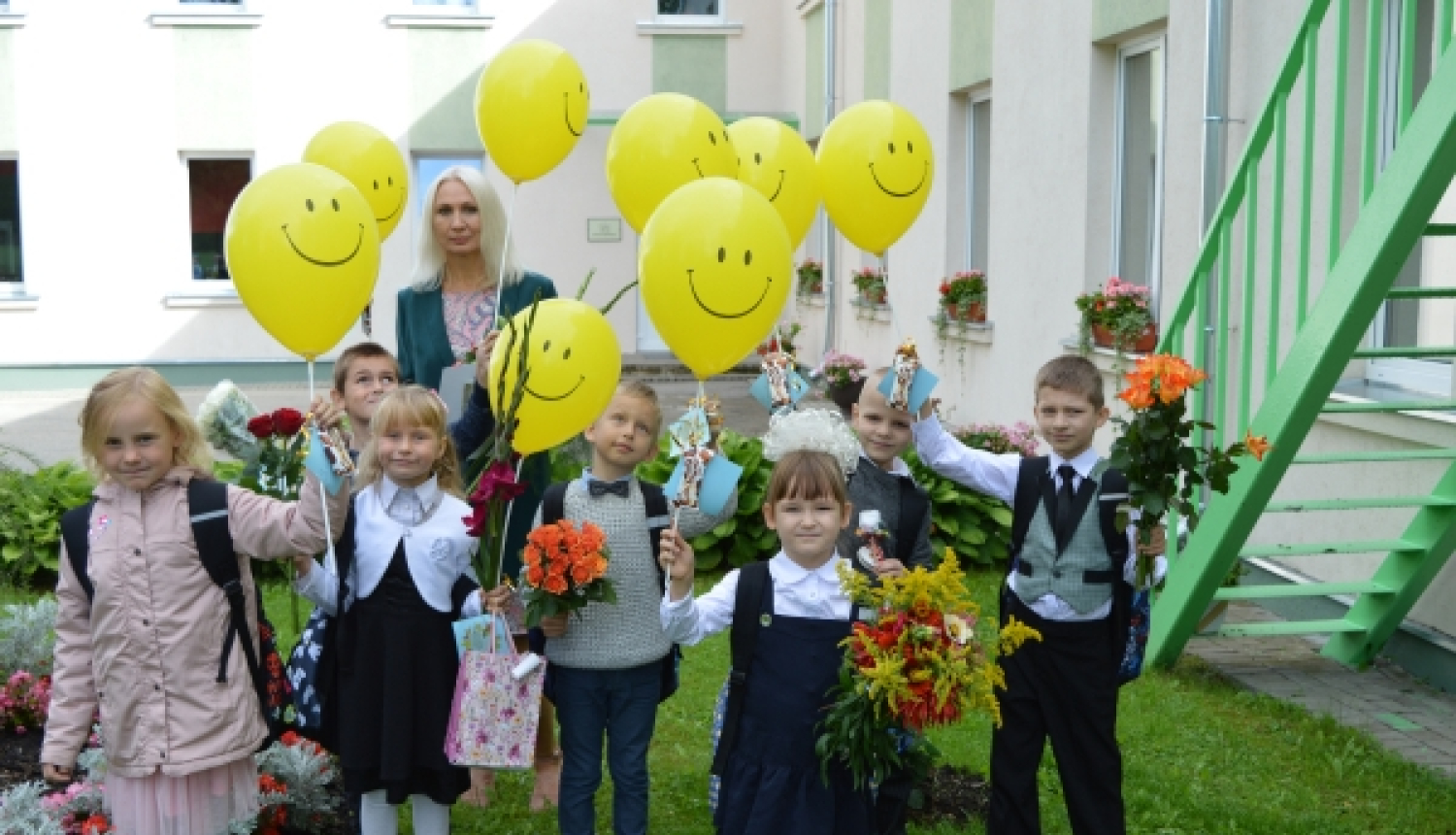 Foto: Rožupes pamatskolas pirmklasnieki kopā ar audzinātāju Lidiju Afanasjevu