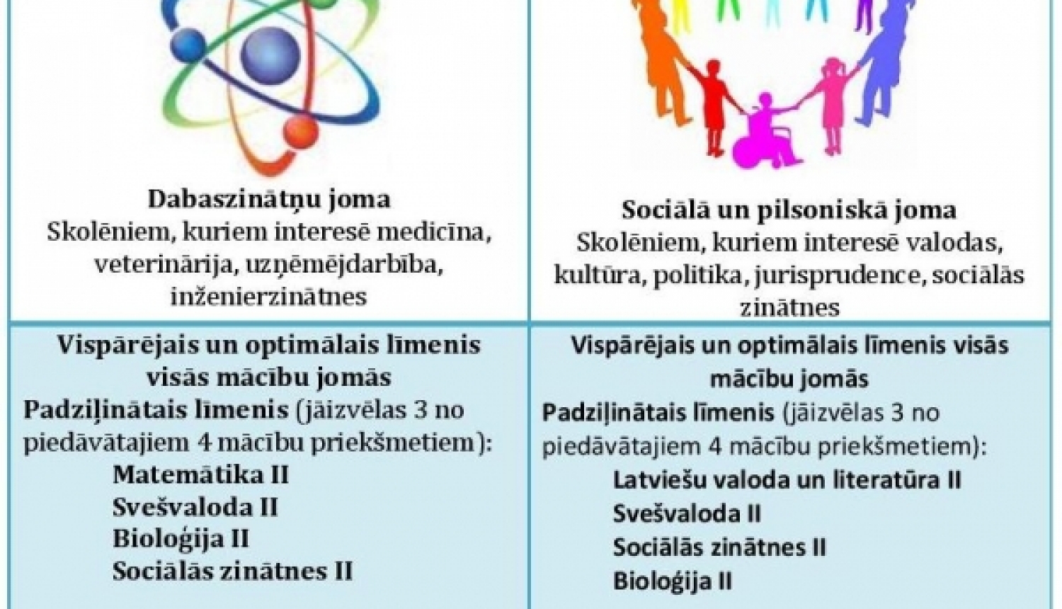 Rudzātu vidusskola 2020./2021. mācību gadā aicina topošos vidusskolēnus, kurus interesē medicīna, veterinārija, uzņēmējdarbība un inženierzinātnes, apgūt DABASZINĀTŅU jomu, savukārt tos skolēnus, kurus interesē interesē valodas, kultūra, politika, jurisprudence, sociālās zinātnes - apgūt SOCIĀLO UN PILSONISKO mācību jomu.