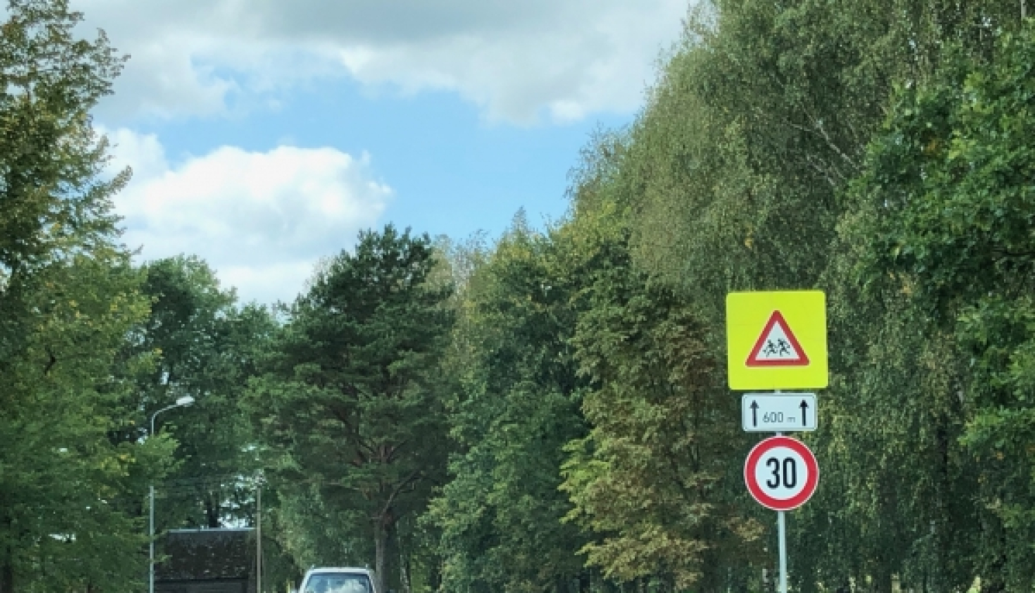 Ceļa zīmes ir uzstādītas, lai nodrošinātu skolēnu, kas pa šo ceļu dodas uz skolu, drošību. Pašvaldība vairākkārt bija vērsusies VAS "Latvijas Valsts ceļi" ar lūgumu ierobežot ātrumu minētajā ceļa posmā, jo ceļš ir samērā šaurs un slikti pārredzams, turklāt pēdējos gados uz tā ir palielinājusies satiksmes intensitāte. Tagad atļautais ātrums ir samazināts līdz 30 km stundā.