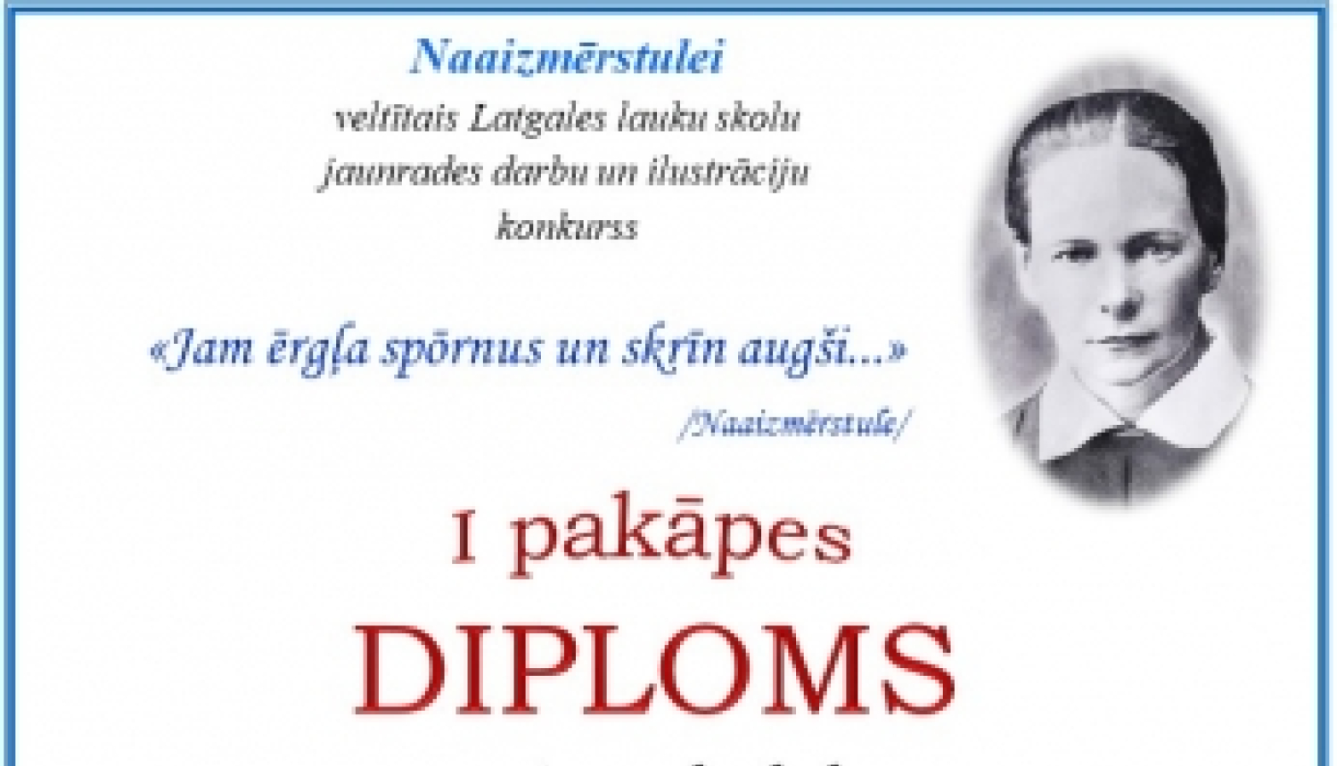 Ir noslēdzies ikgadējais Tautas skolotājai, latgaliešu rakstniecei un sabiedriskajai darbiniecei Naaizmērstulei veltītais Latgales novada lauku skolu jaunrades darbu un ilustrāciju konkurss, kura moto bija viņas iedvesmojošais teiciens: “Jam ērgļa spōrnus un skrīn augši…”. Priecājamies un sveicam mūsu skolas 12. klases audzēkni Dāvidu Rubenu ar šajā konkursā iegūto 1. pakāpes diplomu!