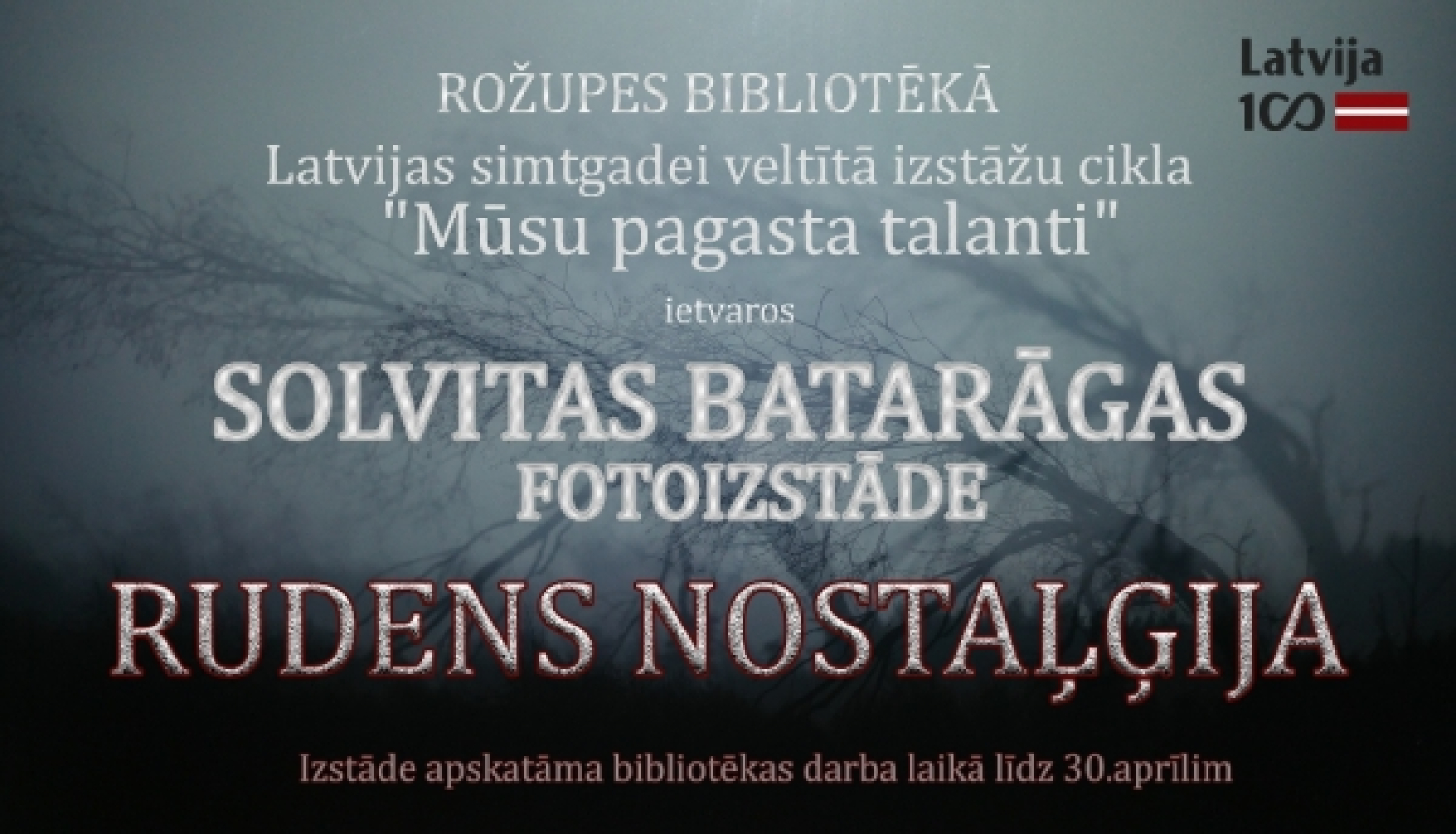 Rožupes bibliotēkā Latvijas simtgadei veltītā izstāžu cikla “Mūsu pagasta talanti” ietvaros Solvitas Batarāgas fotoizstāde “Rudens nostaļģijas”. Izstāde apskatāma bibliotēkas darba laikā līdz 30. aprīlim.