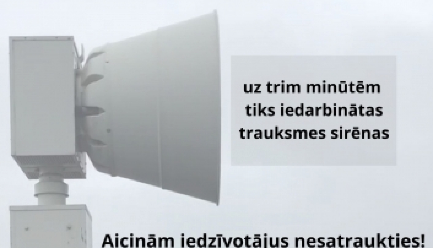 30.novembrī no plkst.10.00 līdz plkst.10.20 visā valstī, tiks iedarbinātas trauksmes sirēnas uz trim minūtēm. Iedzīvotājiem nav pamata uztraukumam, jo tā ir kārtējā trauksmes sirēnu pārbaude. Gadījumā, ja trauksmes sirēnu pārbaudes laikā tās nedzirdat, nesatraucieties, jo ārkārtas gadījumos tiks izmantoti arī citi apziņošanas veidi, piemēram, informācijas nodošana pa skaļruņiem. VUGD aicina viesnīcu administrāciju informēt savus ārvalstu viesus par gaidāmo trauksmes sirēnu pārbaudi, lai nerastos lieki uztraukumi.