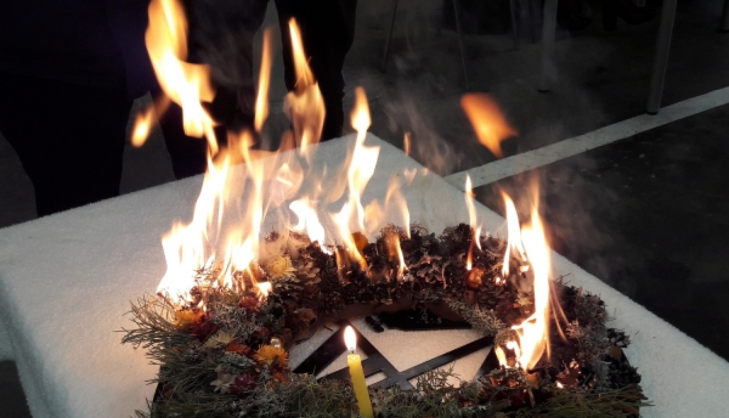 - neievietojiet sveces adventes vainagā tieši uz degtspējīgiem priekšmetiem, bet iestrādājiet vainagā stabilus un nedegošus sveču turētājus;