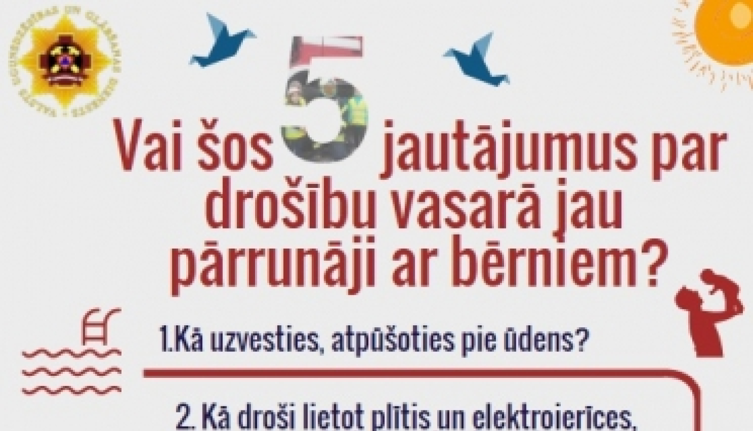 Lai šo vasaru aizvadītu bez traģiskiem nelaimes gadījumiem, VUGD aicina vecākiem ar bērniem pārrunāt piecus ar drošību vasarā saistītus jautājumus!