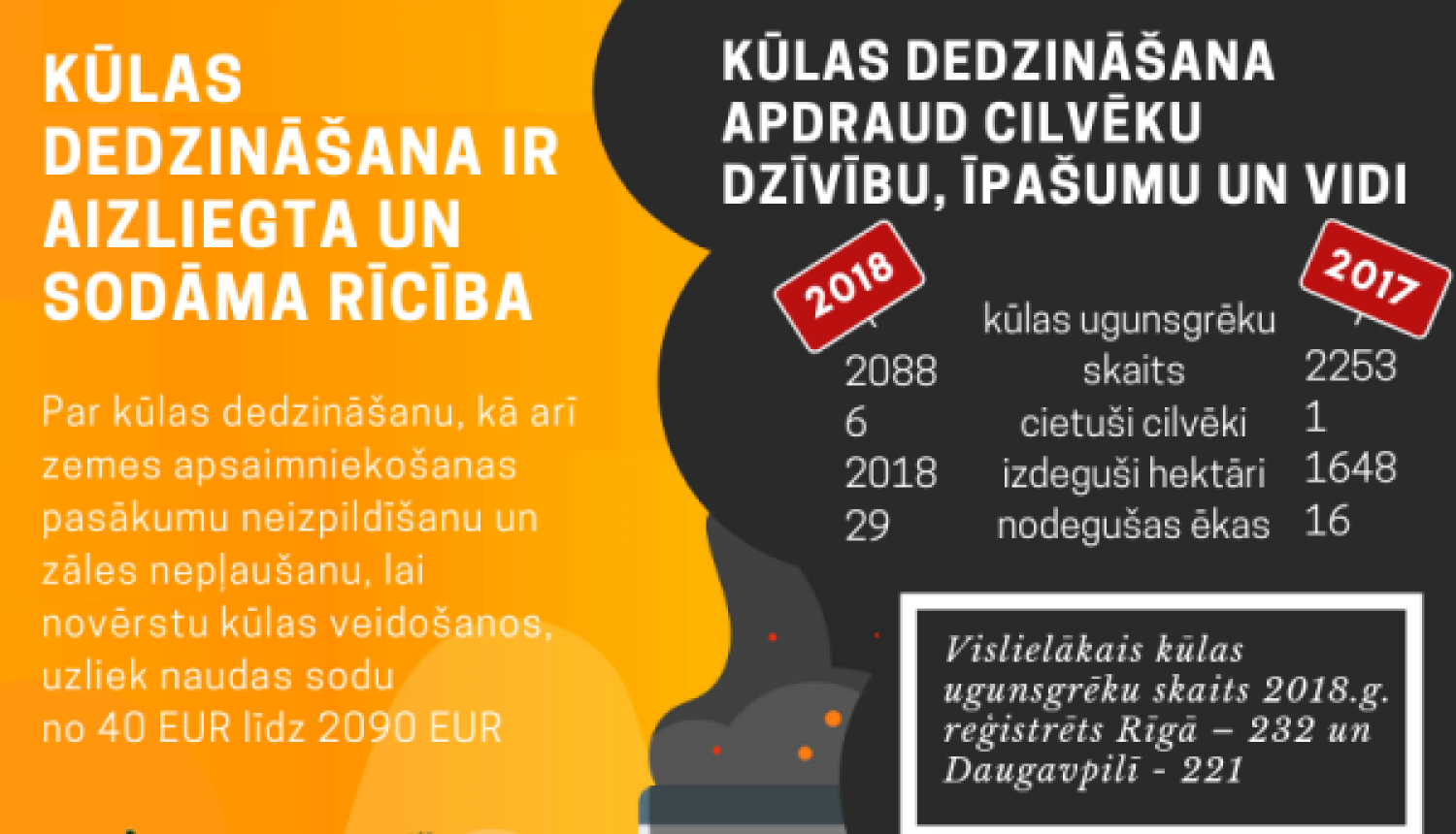 Kopējā statistika par kūlas ugunsgrēkiem Latvijā ir pieejama šeit: www.vugd.gov.lv/files/opnews/Kulas_ugunsgreki_2012_2018.pdf
